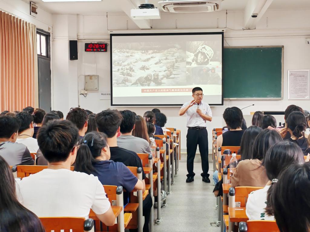 课程围绕百年党史、时代方位、精神谱系与时代担当层层展开,为新生开启大学生涯提供了坚实的思想引领。罗胜京以党史为脉络,带领同学们回顾党的百年奋斗历程,指出“党的历史是最生动、最有说服力的教科书”。他结合党的二十大精神,系统阐释新时代十年的三件大事与标志性成果,明确我们所处的历史方位与使命任务。通过讲述长征等感人至深的红色故事,他生动解读了中国共产党人精神谱系的深刻内涵与时代价值,并紧密联系学校发展,强调广工作为“省属理工科高校‘长子’”的责任担当,激励同学们将艺术设计与国家发展相结合,努力成长为高层次设计创新领军人才。